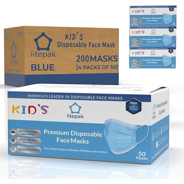 200pcs Kids Disposable Face Masks - 3 Ply Kids Mask for Boys Girls - (Blue)